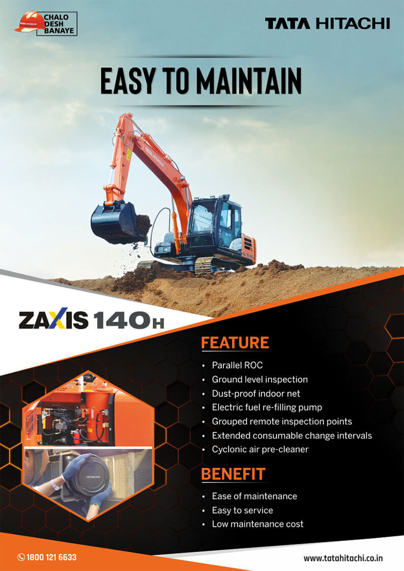 Introducing the all-new ZAXIS 140H ULTRA, an excavator that delivers unmatched performance with exceptional efficiency and precision. Its limitless reliability and durability ensures resilience in the toughest condition. Boasting top-notch technology & versatility it incorporates innovative features for unparalleled functionality. Prioritizing the operator's well-being, it offers redefined comfort & safety with an ergonomically designed cabin loaded with safety measures. Backed by Tata Hitachi's assured support, this excavator guarantees peace of mind throughout its lifespan.